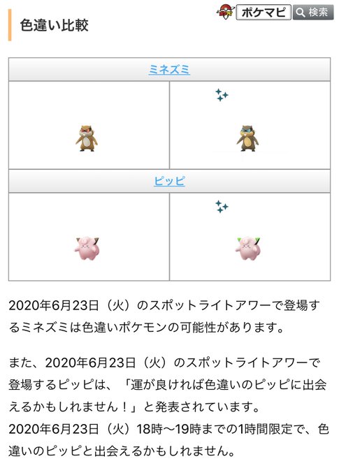 Uzivatel ポケモンgo攻略情報 ポケマピ Na Twitteru 最新版 画像更新 季節イベント 開催情報 開催日時 6 19 金 8時 6 24 水 22時 ソルロックとルナトーンが出現 地域入れ替え 色違いピッピが野生出現 ポケモン捕獲時のほしのす
